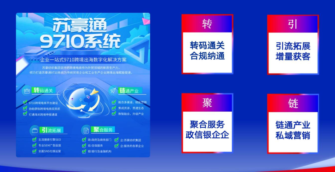 ]article_adlist-->苏豪纺织集团聚焦数字技术与传统贸易深度融合策略,创新打造具有自主知识产权的“苏豪通EB2B系统”,在保留传统外贸优势的基础上,依托全流程一站式跨境B2B解决方案,覆盖市场调研、独立站建设、SEO优化、广告投放至询盘管理等全链条服务,并运用AI技术提升客户服务效能。目前,该系统已签约服务企业超140家,涉及新能源汽车、物联网、5G终端、新材料、医药农药、纺织品服装等领域,在南京、南通、无锡、扬州、连云港等地建立了跨境电商合作伙伴关系。2025年以来该系统累计实现经海关认定的跨境出口结关金额近27亿元,产品独立站吸引询盘超1000个。
