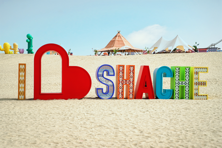 活动现场设置多个美陈装置,“I LOVE SHACHE”式的主题打卡点,饰以艾德莱斯纹样,尽显非物质文化遗产风采;彩色巨石组阵化作“多巴胺”调色盘,一眼望去瞬间唤醒满格元气;倾倒陶罐造型营造超现实空间观感,引发游客连连赞叹;童趣乐园内置缤纷宝藏,打造沉浸式亲子体验空间;日晷光影随天光变换景致,一圈圈勾勒出沙海“年轮”。